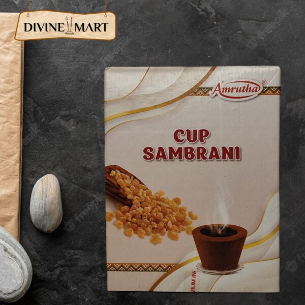 This box contains 12 cup Sambrani. An experience of pure Loban Fragrance. It has a steel cup holder inside.